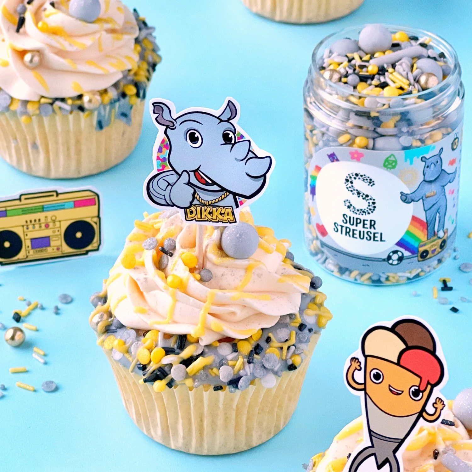 Oh Yeah! DIKKA is in the house! Wir haben einen nashornstarken StreuselMix zusammen mit DIKKA kreiert. Ja, wirklich, der meeeeega Star bei den Kids, der alle mit seinen obercoolen Rapsongs so richtig aus den Socken haut. Wie superkrass ist das denn? Jetzt kannst du den Geburtstagskuchen deiner Kids so richtig cool im DIKKA Style verzieren. ODER du schnappst dir deine Kids und ab mit euch in die Küche, DIKKA Songs laut aufdrehen und losstreuseln!