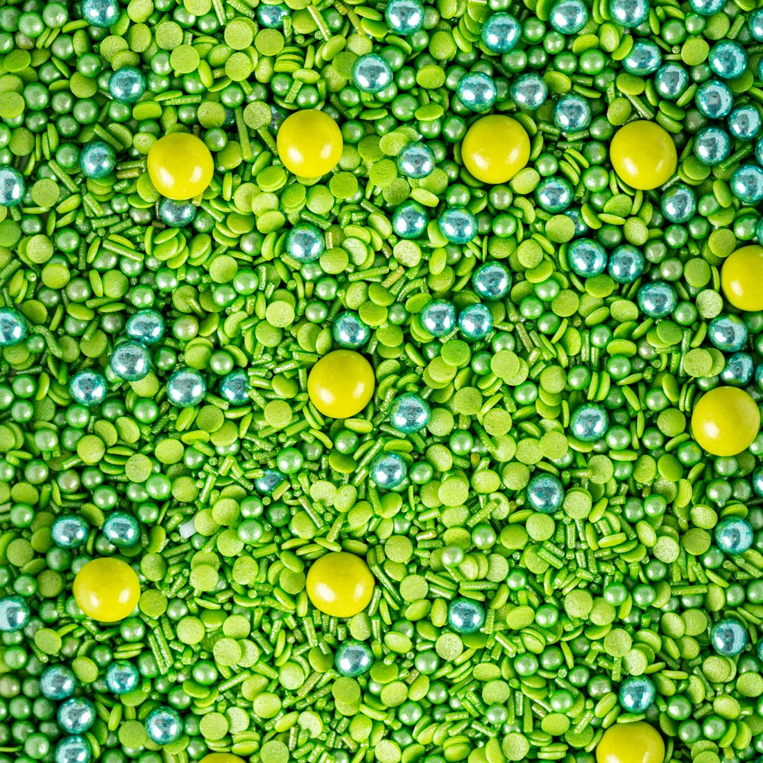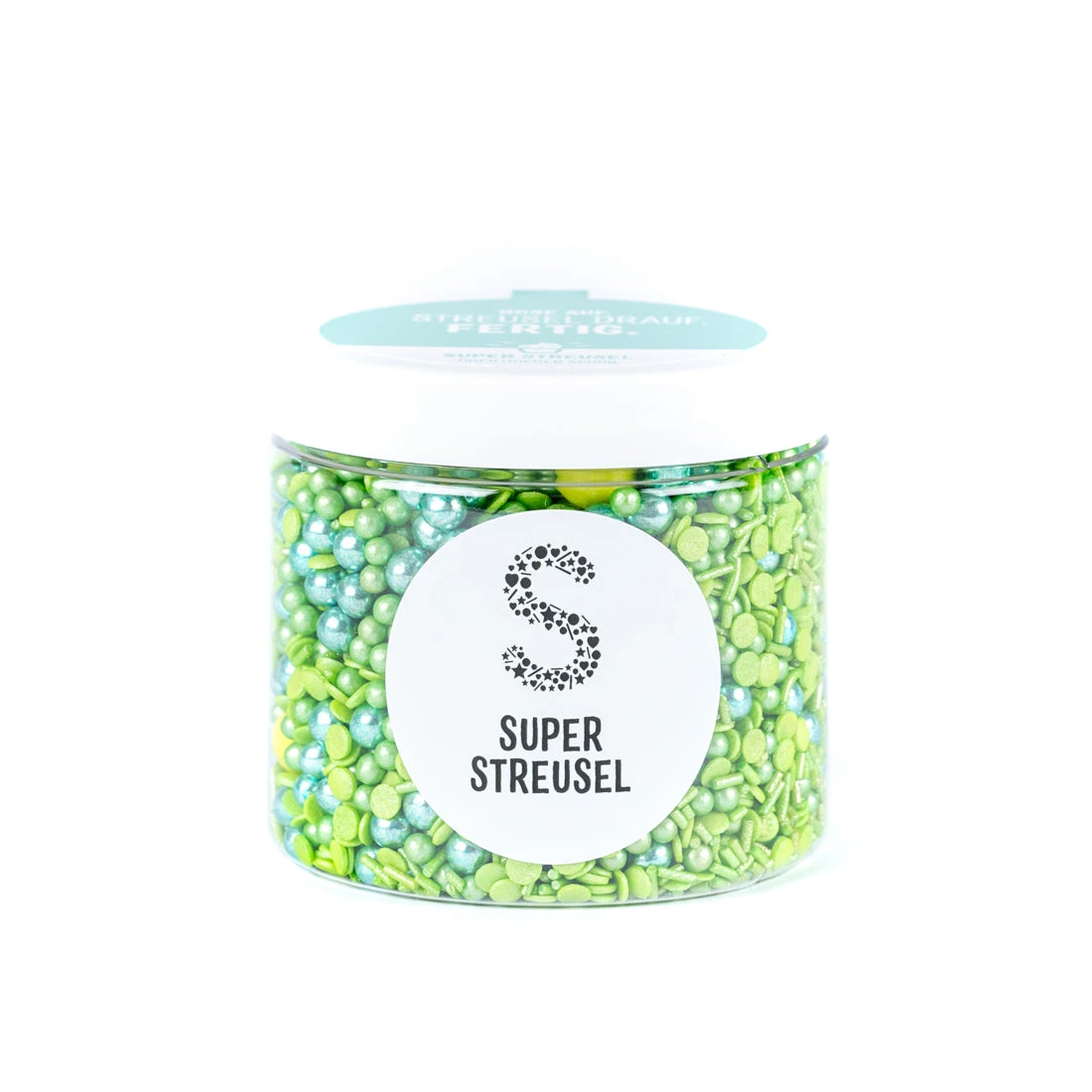 Diesen einfarbigen Streusel-Mix aus lauter grünen Zuckerstreuseln brauchst du, wenn du „irgendwas mit Fußball“ backst und essbares Gras brauchst, wenn Ostern nicht mehr weit ist oder wenn deine allerallerallerallerwirklichallerliebsteLieblingsFarbe grün ist. Genau dann legen wir dir diese einfarbige Mischung aus grünen Zuckerstreuseln, Konfetti-Streuseln, Zuckerperlen und leckeren metallisch schimmernden Crispy-Kugeln ans Herz. Stell dir das mal vor: der ganze Kuchen eingeschlagen in ein grünes Streuselmeer!! Manchmal ist Meer eben Meer. Oder Meer mehr. Oder mehr mehr. Oder halt mehr Streusel.