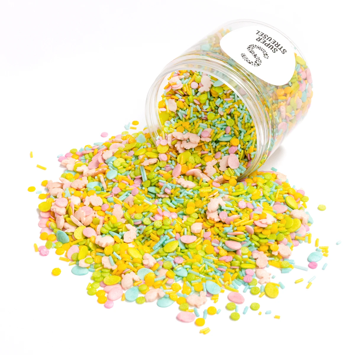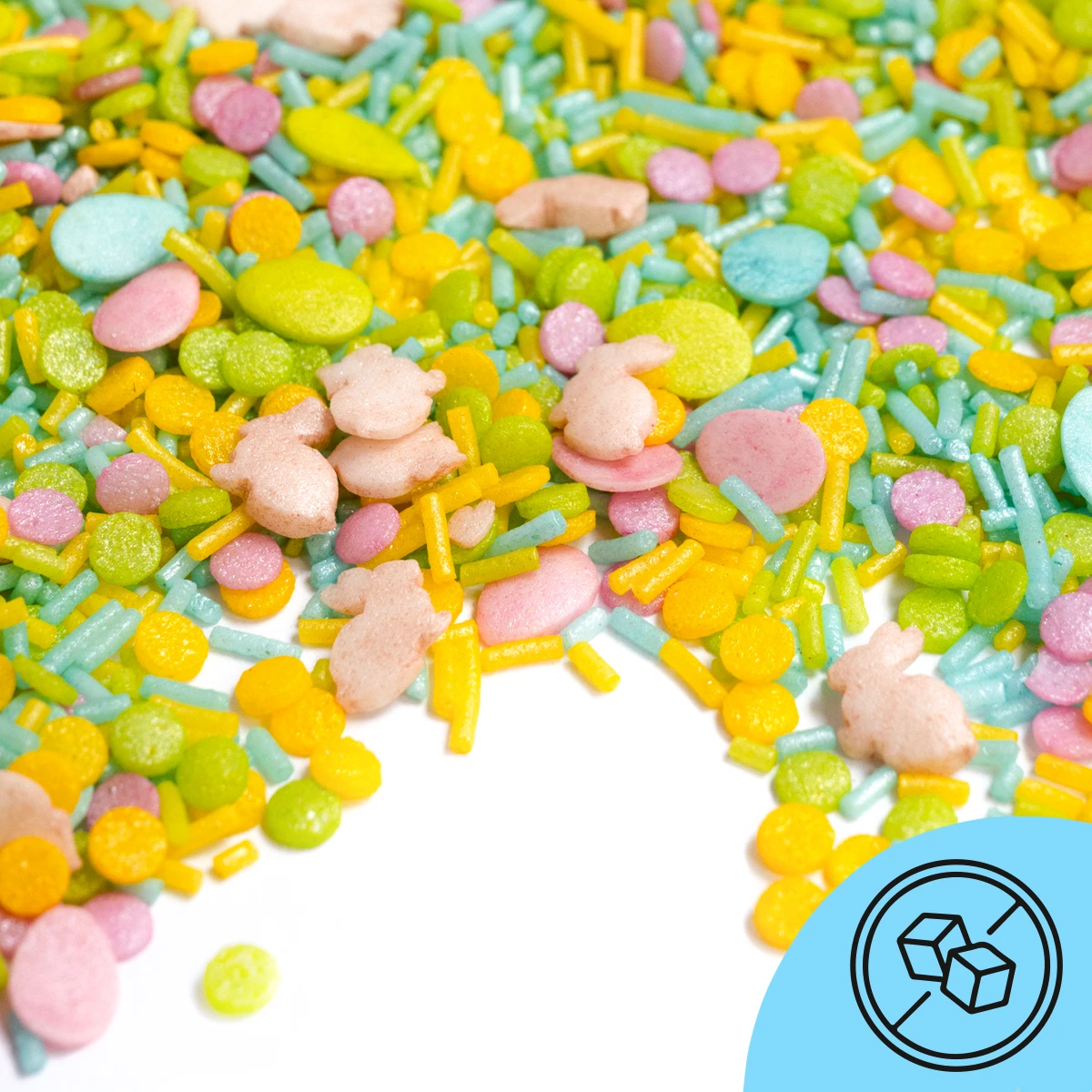 Hier kommt Ostern im Galopp angehoppelt, denn neben den niedlichen Osterhasenstreuseln eiern viele bunte StreuselEier in Rosa, Limettengrün und Hellblau durch diesen zuckerfreien StreuselMix. Dazu zuckerfreie Streusel in Rosa, Limettengrün und Hellblau.