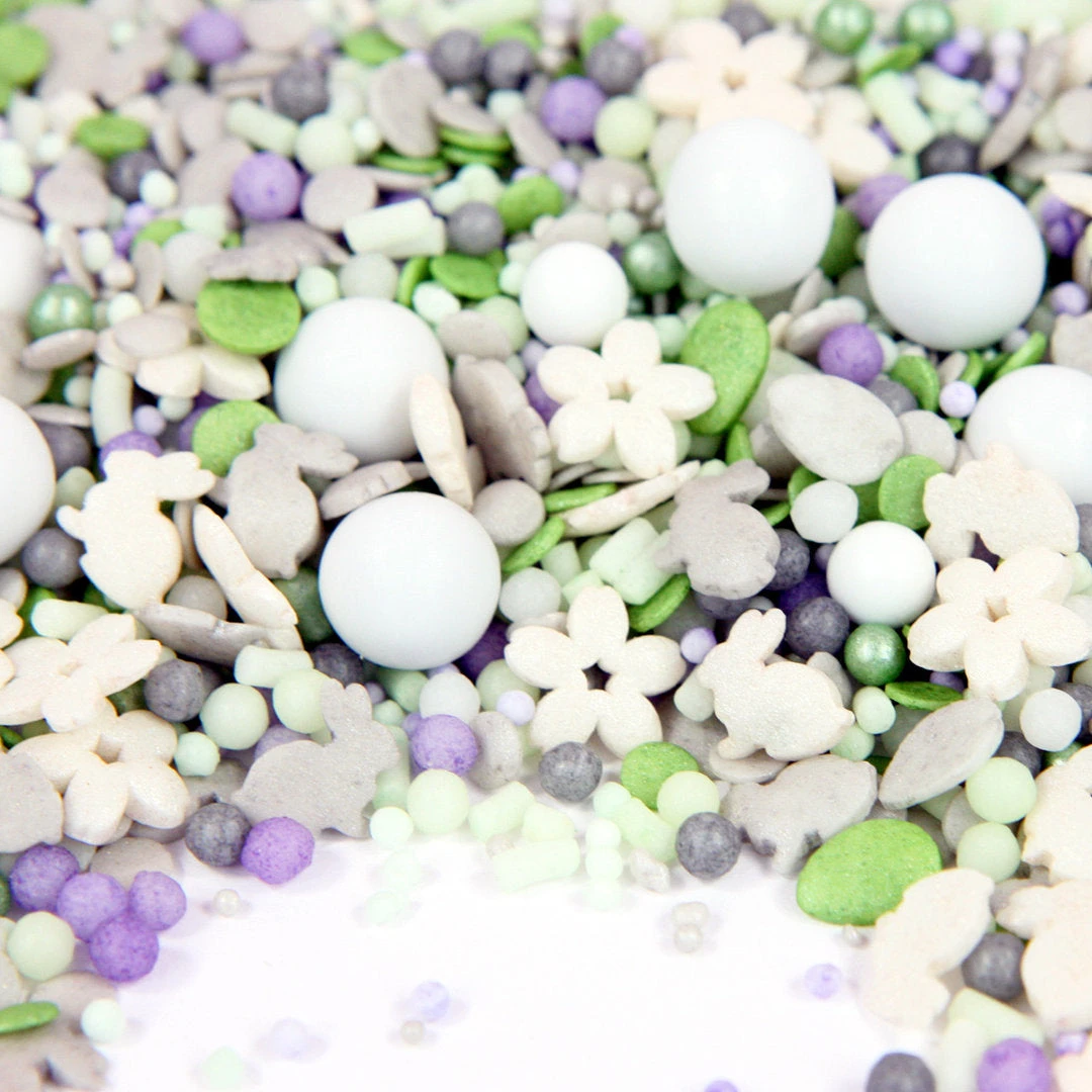 Na, wen haben wir denn hier? Süße kleine Häschen, die durch das StreuselParadies tollen. Sie hopsen über die frischen FrühlingsWiesen und freuen sich auf Ostern. Dann haben sie nämlich ihren groooßen Auftritt auf deiner OsterTorte oder dem OsterZopf. StreuselMix Mümmelchen hebt sich nämlich ganz besonders von all den anderen OsterMixen ab. In Blau, Grün und Weiß zeigen Konfetti, Schokokugeln und Zuckerperlchen wie edel Ostern in diesem Jahr aussieht. Orange und Grasgrün können sich hinten anstellen – Häschen, Blümchen und Eier beeindrucken stilsicher mit kühler Frische und einem neuen, suuuperduper hübschen OsterLook.