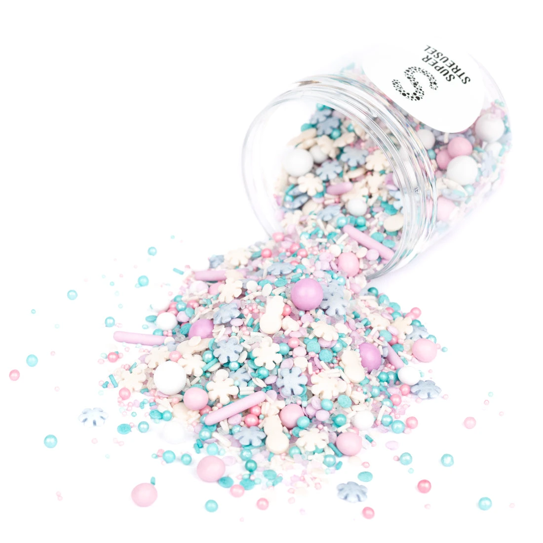 StreuselMix SchneeStürmchen hält alles bereit, was sich Weihnachtselfen und kleine und große BackstubenHelferlein wünschen: Schneeflocken, Zuckersticks, Schoko- und Knusperkugeln sowie natüüüürlich kleine Konfetti- und Kügelchenstreusel – ach eigentlich alles, was das Herz eines wahren WinterFans begehrt. Natürlich alles in den schönsten Pastellfarben der WeihnachtsZeit: Himmlisches Blau, zartes Rosa und Weiß wie der Schnee. Zum Dahinschmelzen!