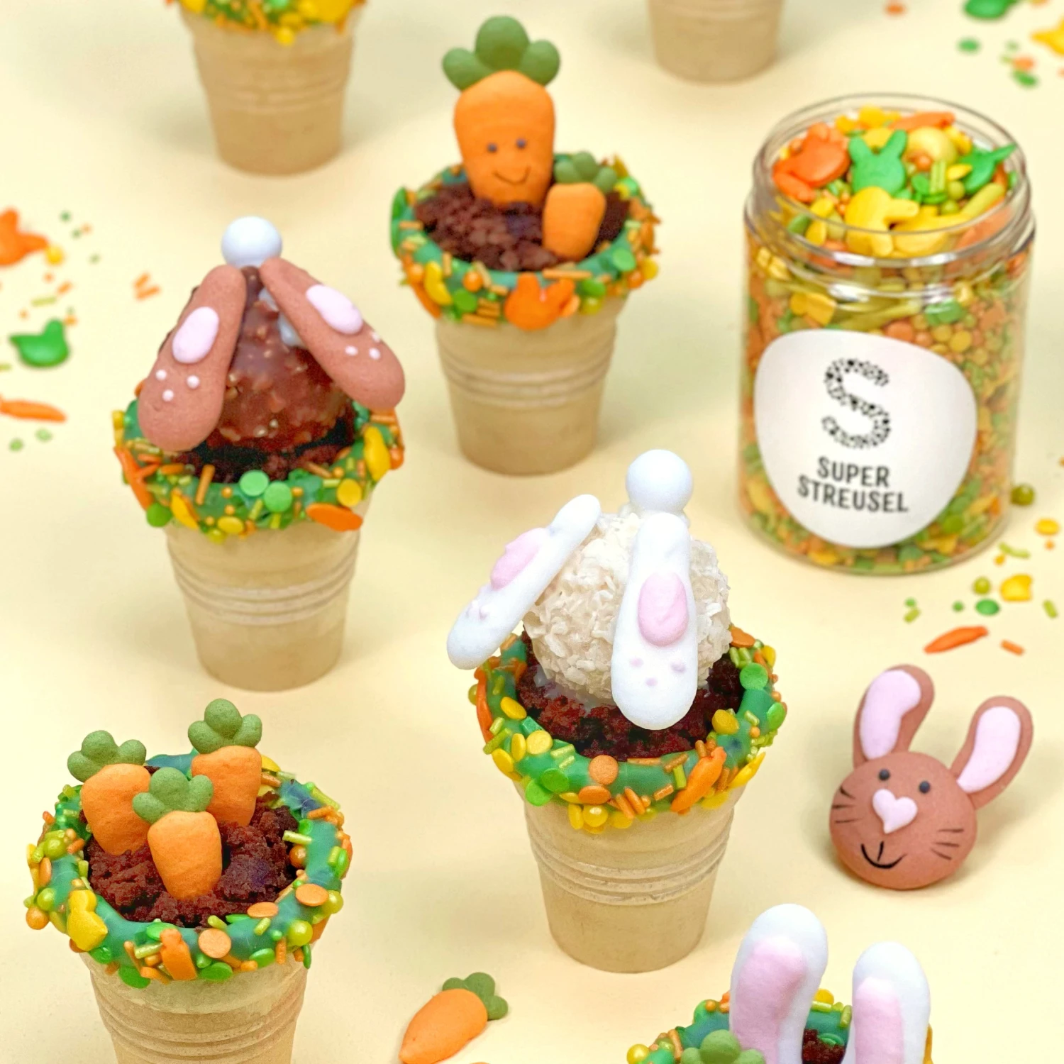 SuperDinger machen sich tiptopsupergut auf Cupcakes, du kannst sie auf Desserts platzieren oder eben auf der schönsten OsterTorte thronen lassen. Und wir schwören mit SuperStreuselEhrenSchwör: Null Aufwand, maximaler Effekt 🙂